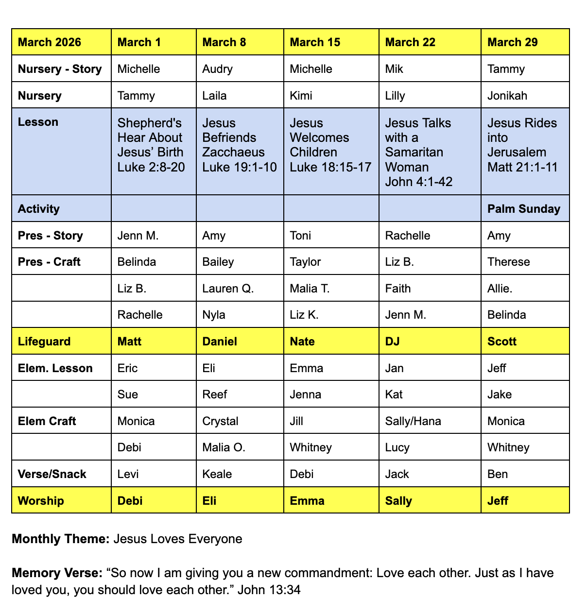 EASTER IS APRIL 5. SCHEDULE COMING SOON. It takes many hands to share Jesus with our community. Let Kat know if you are unavailable to serve.